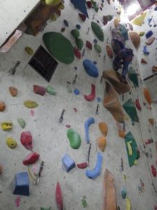 教授 リハビリ期間が終わり がしがし攀じっています 茶色 5.12aは中々に手ごわい 落ちたら首に負担がかかるので 安全のためプレクリップ 大事なことです